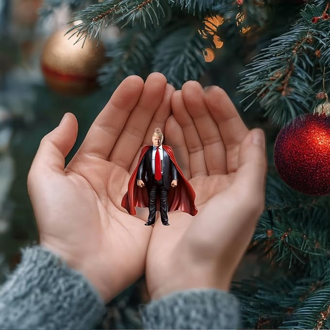 This premium Trump Super Hero ornament is a bold and playful collectible designed for fans who appreciate humor, patriotism, and statement décor. Featuring a detailed character design inspired by a heroic persona, it adds personality and impact wherever it’s displayed.